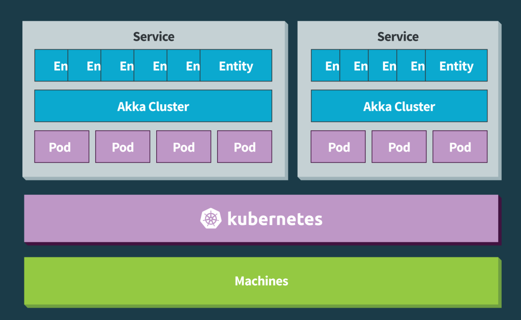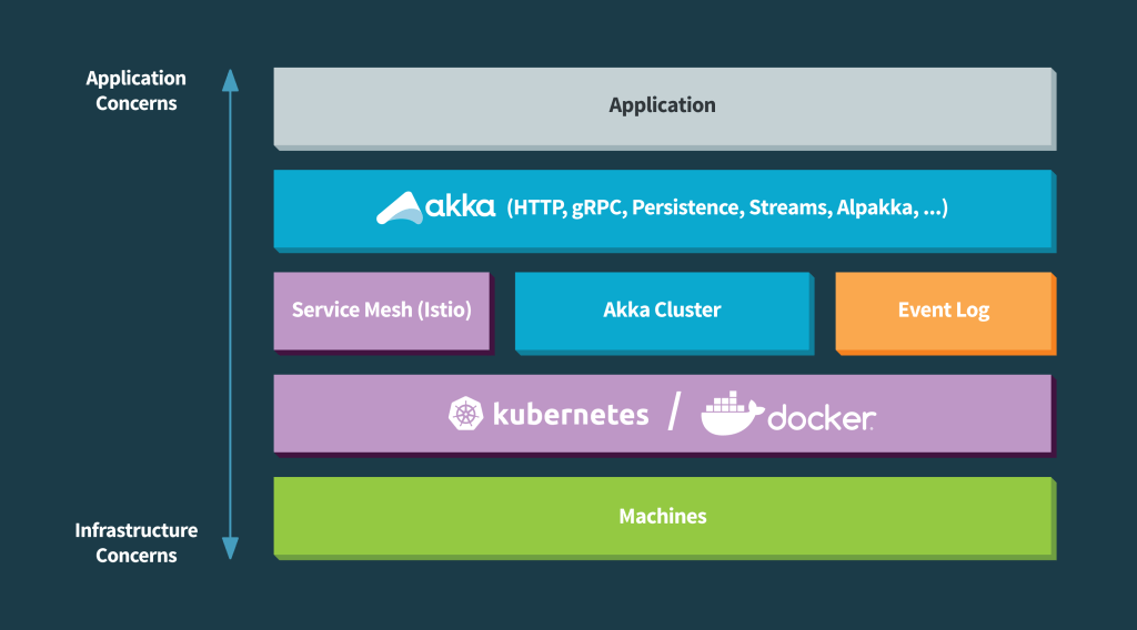In short, Kubernetes is looking after elasticity, auto scaling and resilience outside the nodes while Akka and other reactive application tools are looking after those within the application layer and the nodes.